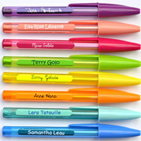 Ideales para identificar con el nombre los bolígrafos, los rotuladores, los lápices de colores, las gafas de sol, las gafas de piscina, los cepillos de dientes, los peines, champús, cubiertos.